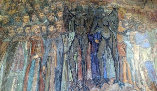 В конце восьмидесятых, незадолго до конца эпохи Чаушеску, церковь реставрировали. Говорят, что в образе дьявола можно узнать известного в те времена бухарестского философа, яростного атеиста. Так реставраторы отомстили ему за травлю церкви.