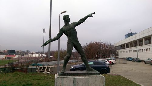 А вот скульптуры перед центральным входом придают арене монументальность и респектабельность.