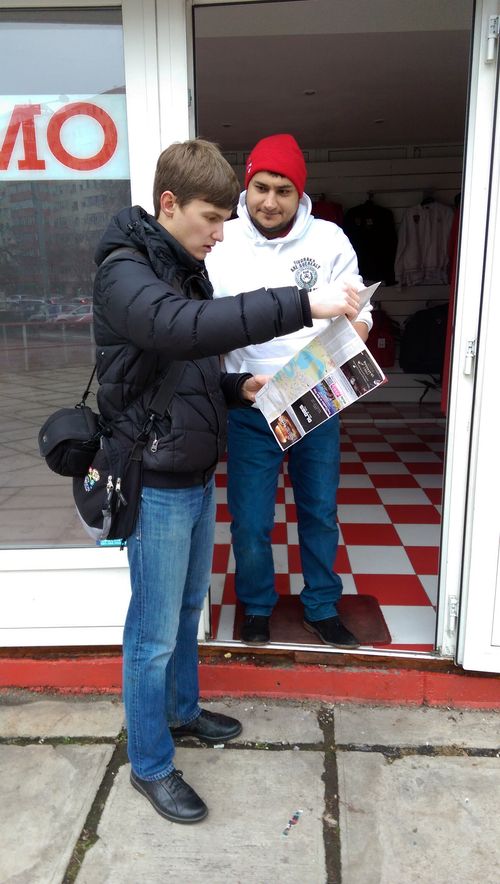 У входа - кассы и скромный фирменный магазин «Динамо», на полках - обычный для такого заведения набор товаров, за которым присматривает общительный продавец. Покупаю клубные значки. Парень выясняет, откуда я, оживляется и характерными жестами показывает, какие манипуляции сексуального характера киевское «Динамо» должно вечером проделать со «Стяуа», заклятым «другом» его любимого клуба. Моему коллеге подсказывает с помощью карты, как лучше добраться до домашнего стадиона «Стяуа» Генча и желает удачи вечером на матче.