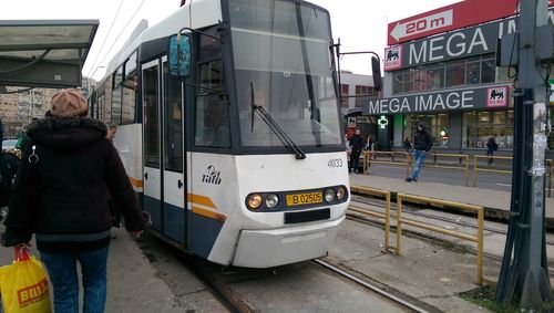 Остановка трамвая. Отделена от проезжей части автомобильного транспорта платформой для пассажиров и ограждением. Стоимость проезда - 8,5 лей (туда и обратно, сюда входит стоимость многоразовой пластиковой карточки - 1,5 лей, которую можно пополнять)