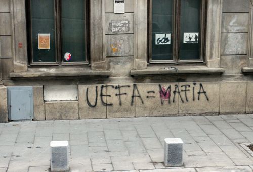 Перед матчем мы с двумя коллегами, решив сократить путь из фойе стадиона к пресс-центру, пошли напрямик по лабиринтам внутренних помещений. После нескольких минут блужданий по хитросплетению лестниц и коридоров попали на верхний ярус возле гостевой трибуны, упершись в ограждение и группу полицейских. Те отказались нас пропускать куда-либо, даже бейджи с аккредитациями на матч не помогли. Неожиданно один из полицейских заговорил с нами по-русски, почти без акцента, предложив нас сопроводить в пресс-центр. Возможно, он перепутал нас с украинскими болельщиками и, опасаясь за нашу безопасность, довел до места назначения. Ничего подобного ни на одном из стадионов Европы я не встречал.
