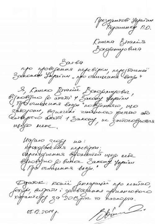Про це йдеться у декларації Кличка, оприлюдненій на сайті президента.