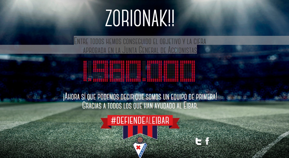 На сайте www.defiendealeibar.com были выставлены на продажу акции клуба, а вырученные от продаж деньги должны были пополнить бюджет «Эйбара». Каково же было удивление, когда обнаружилось, что акции были куплены людьми из почти 50-ти стран мира! «Эйбар», собрав нужную сумму, отправился в Примеру.