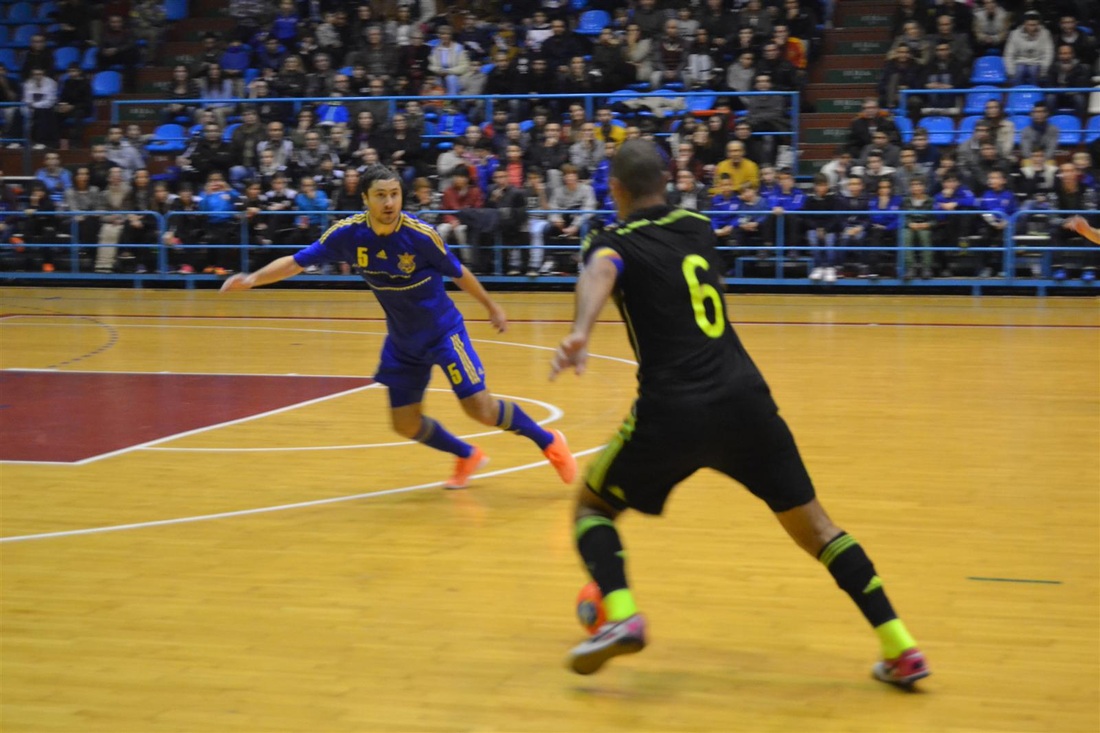 Во вторничном матче сборной Украины удался первый тайм, в котором уже на 3-й минуте Евгений Валенко открыл счет. Забитый мяч придал уверенности нашим футболистам, и хотя мячом больше владели испанцы, сборная Украины находила возможности для ответных атак. Как результат – на 10-й минуте Дмитрий Сорокин во второй раз пробил Хесуса Эрреро. И хотя на 15-й минуте самый заметный в составе испанцев Фернандао один мяч отыграл, но последнее слово в тайме осталось за подопечными Александра Косенко – Белоцерковец незадолго до сирены пробил без шансов для испанского голкипера.