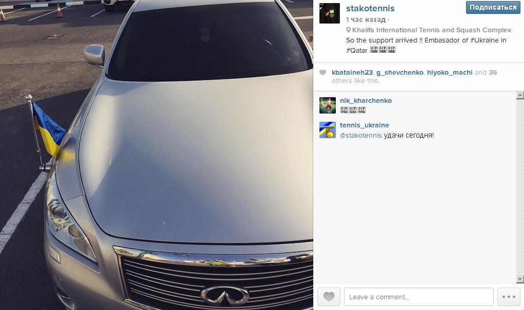 Посол Украины в Катаре Евгений Микитенко поддержит одного из лидеров украинского тенниса Сергея Стаховского на турнире Qatar ExxonMobil Open. Об этом сам теннисист сообщил на своей странице в Instagram.