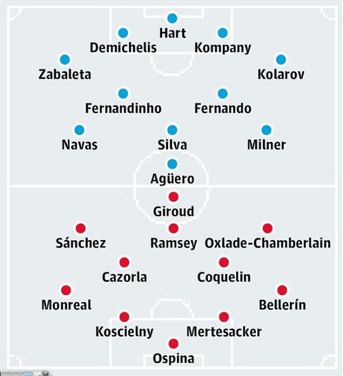 Не сыграют: Яя Туре (ивуариец отправился на КАН), Насри (травма) – Артета, Дебюши, Уэлбек, Уилшир, Гиббс (все травмированы)