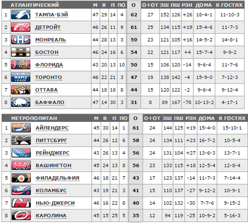 4:3 Детройт - Хенрик Зеттерберг - 12 (Павел Дацюк - 20, Томаш Татар - 13), 01:59