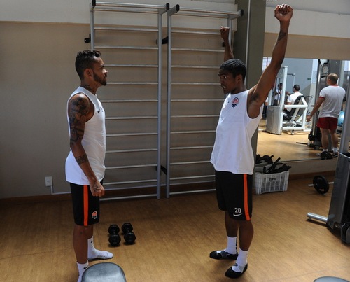 Утренняя тренировка «Шахтера» 19 января проходила в самом неожиданном месте Бразилиа, которое только можно представить в одном ассоциативном ряду с футбольной командой. В Центре подготовки пожарных расчетов! По традиции «Шахтер» приехал сюда в сопровождении семерых мотоциклистов-полицейских.