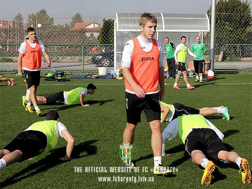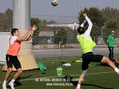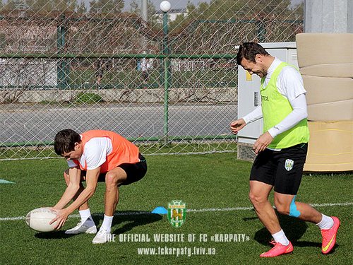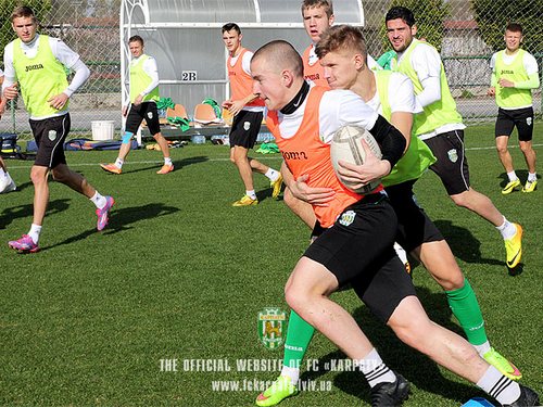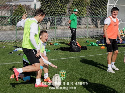 Про те, що ранкове тренування буде незвичним, карпатівці зрозуміли ще тоді, коли йшли з готелю на футбольні поля. Олег Голодюк та Роман Підківка перекидали один одному регбійного м’яча – «диню».