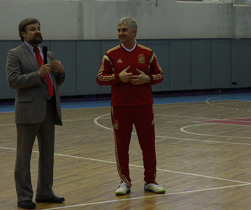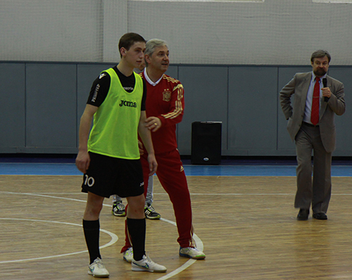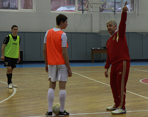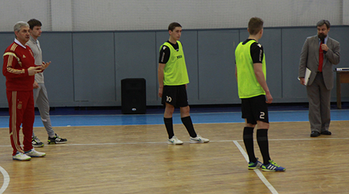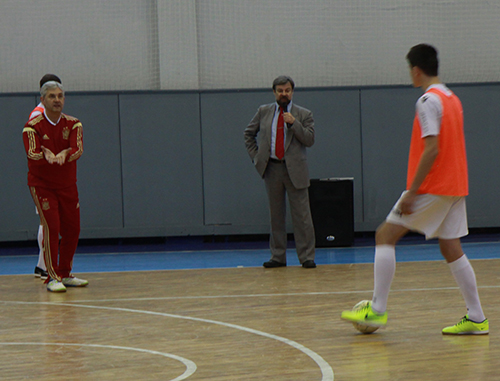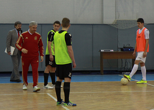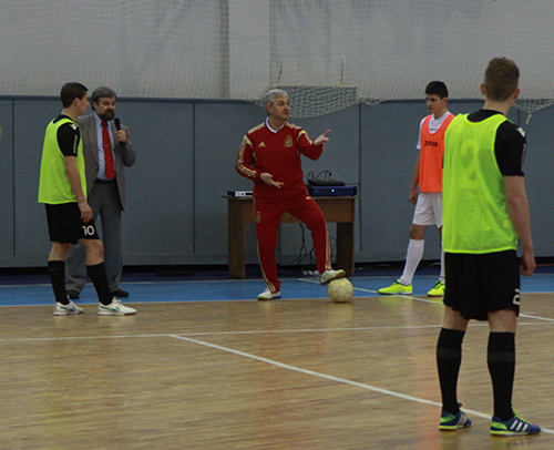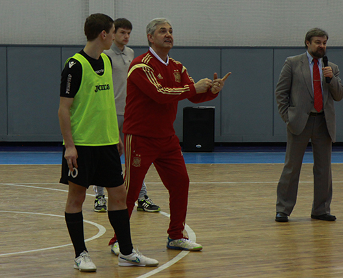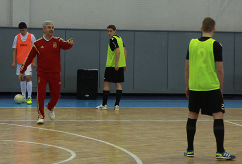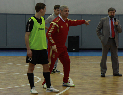 Вторая половина первого дня семинара футзальных тренеров, который в Киеве проводит главный тренер сборной Испании Хосе Венансио Лопес, была посвящена практическому занятию, посвященному действиям футболистов в обороне. Его один из лучших тренеров мира проводил вместе с молодыми футболистами команды «Ураган-2» (Ивано-Франковск).