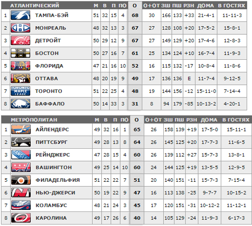 1:0 Детройт - Томаш Татар - 22 (Павел Дацюк - 22, Дэнни Декайзер - 18), 05:29, в большинстве
