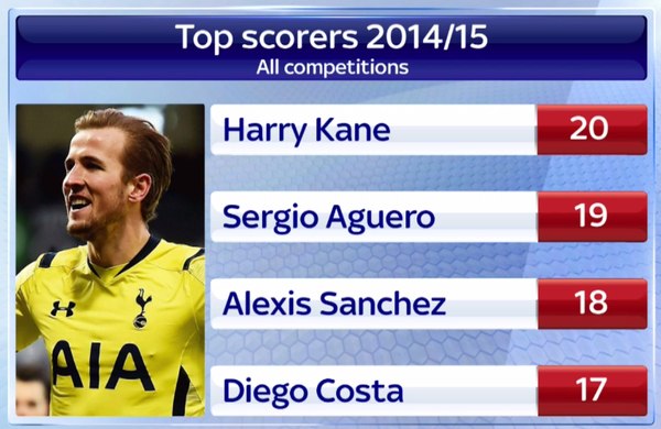 Харри Кейн в поединке с «Вест Бромвичем» оформил второй дубль в сезоне. В АПЛ 21-летний форварда наколотил 10 голов, но во всех турнирах Кейн в этом сезоне забил уже 20 мячей, что позволяет ему опережать таких маститых форвардов, как Серхио Агуэро, Диего Косту и Алексиса Санчеса.