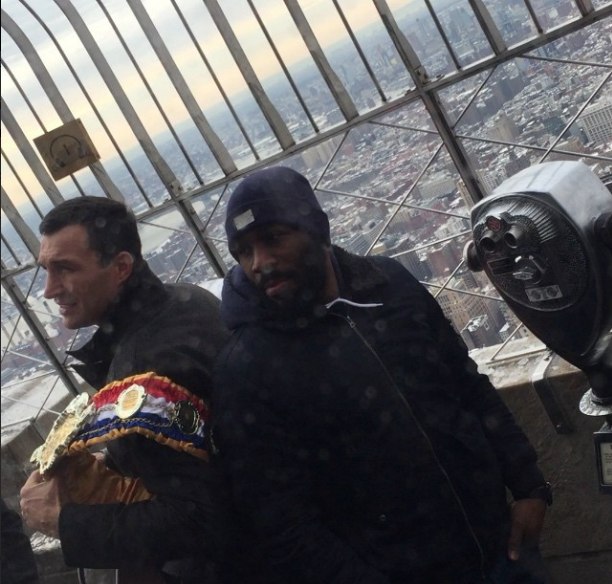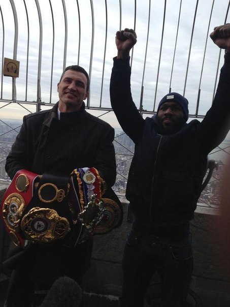 Сегодня в Нью-Йорке чемпион мира WBA, WBO, IBF, IBO Владимир Кличко и американец Брайант Дженнингс впервые встретились перед запланированным на 25 апреля поединком на Madison Square Garden . Дуэль взглядов между украинцем и американцем состоялась на верхушке Empire State Building – второго по высоте здания Нью-Йорка.