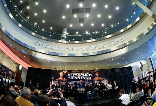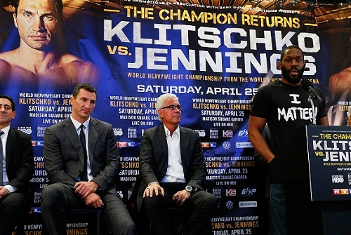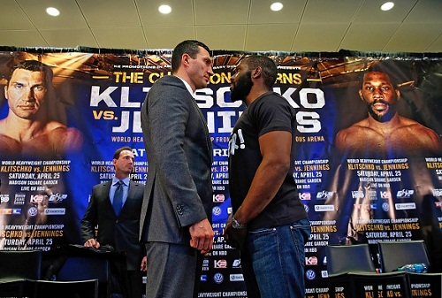 Обладатель титулов WBA, WBO, IBF и IBO в супертяжелом весе украинец Владимир Кличко и американец Брайант Дженнингс провели пресс-конференцию в Нью-Йорке (США), где 25 апреля они встретятся на ринге.