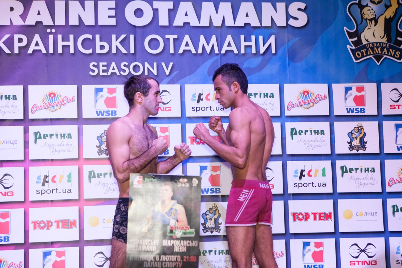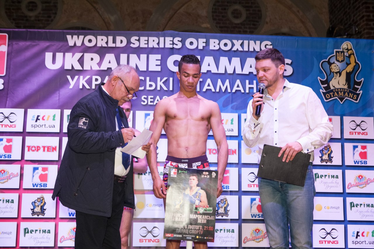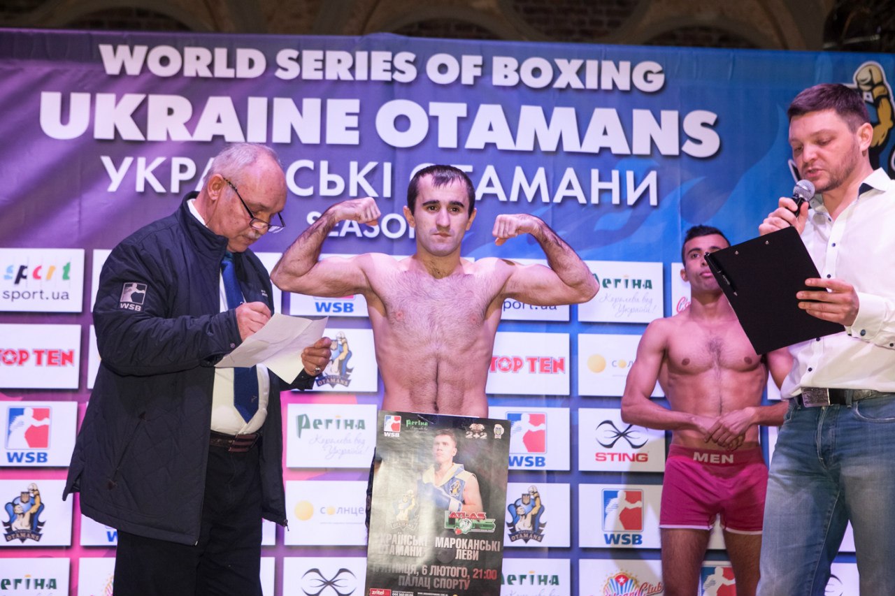 Сегодня в Киеве состоялась процедура взвешивания накануне предстоящего 6 февраля поединка между «Украинскими атаманами» и «Марокканскими атласскими львами» во Всемирной серии бокса.