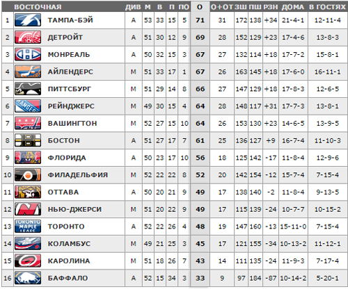 0:2 Детройт - Даррен Хелм - 10 (Томаш Татар - 14, Павел Дацюк - 23), 17:24, в пустые ворота