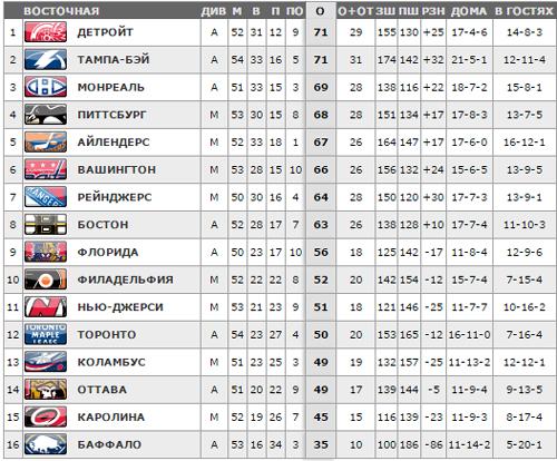 0:1 Детройт - Райли Шихан - 9 (Павел Дацюк - 24, Томаш Татар - 15), 08:11, в большинстве