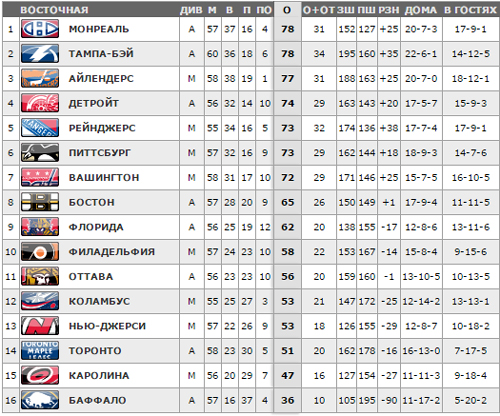 1:4 Тампа-Бэй - Стивен Стэмкос - 31 (Александер Киллорн - 18, Андрей Шустр - 8), 19:39