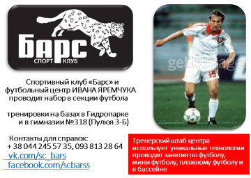 Спортивный клуб «Барс» и футбольный центр Ивана Яремчука проводит набор в секции футбола