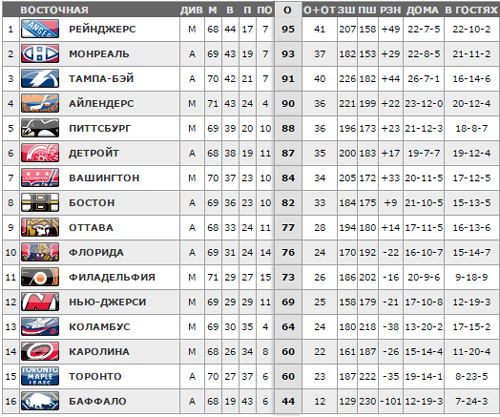 Нью-йоркская команда набрала 95 очков после 68 игр – это второй результат в истории «Рейнджерс», в сезоне-1971/72 было 101 очко после такого же количества матчей.