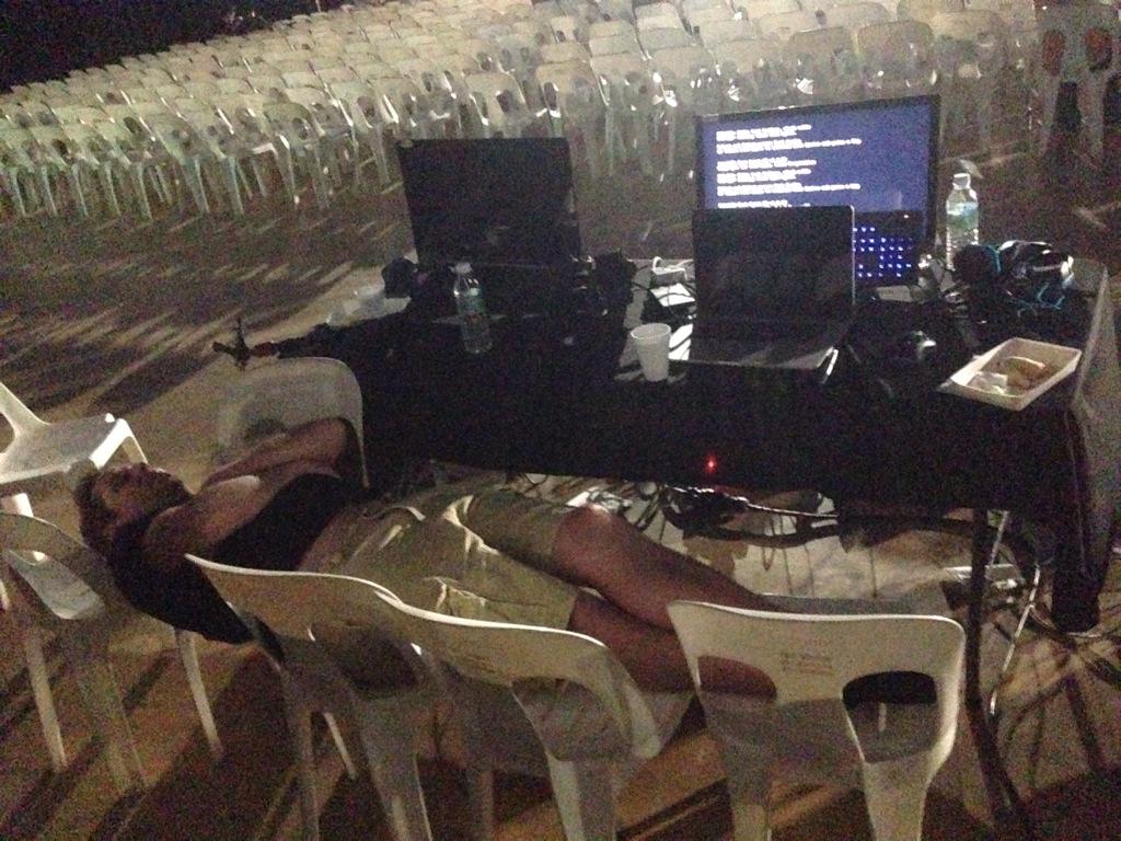 Организаторы не особо спешили помогать командам и кастерам. Пока слаженный коллектив по ремонту локальных сетей из Украины и России пытался устранить проблемы азиатские работники... пошли на обед!