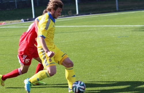 На відміну від першого матчу, в якому наші хлопці не мали особливих проблем зі збірною Латвії, українці зіштовхнулися з більш організованою командою. «Синьо-жовті» відразу захопили ініціативу у матчі і зуміли першими відкрити рахунок. Голом на 19-й хвилині відзначився Дмитро Шевченко. До завершення першої половини зустрічі команди м’ячів більше не забивали.