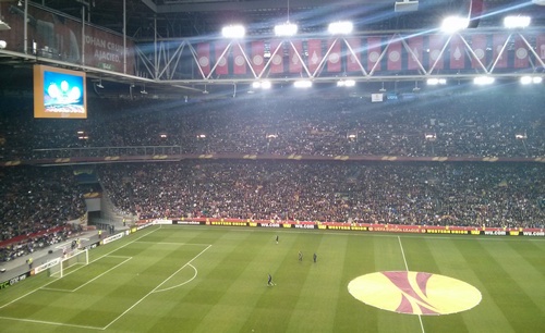Пока мы разглядывали амстердамские диковины, подошло время отправляться на «Амстердам АренУ». Все билеты на матч были распроданы задолго до игры, и, стоит отметить, не зря. Поддержка «Аякса» была поистине великолепной, поющий 52-тысячный стадион – завораживающее зрелище. Разве что разнообразие фанатских зарядов оставляло желать лучшего. Один и тот же куплет, раз за разом повторяющийся в течение десяти-пятнадцати минут, успевает порядком надоесть. В любом случае, с такими фанатами «Аякс» просто не имеет права играть плохо.