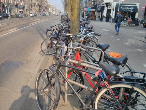 Едва ли не при первых шагах по улице стало ясно, что Амстердам – не город пешеходов. Амстердам – город велосипедистов и велосипедов всех мастей и расцветок. Есть пешеходный тротуар? Будьте уверены, что рядышком проложена и ровнехонькая велосипедная дорожка. И так везде, куда бы вы ни пошли. Амстердам настойчиво рекомендует пересесть с чадящих автомобилей и дорогого общественного транспорта на экологически чистый, полезный для здоровья, дешевый и удобный велосипед. Вот только с непривычки украинские пешеходы частенько путались и залезали на велодорожки, рискуя быть сбитыми и вызывая недовольство добропорядочных голландских велосипедистов.