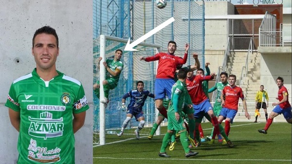 Капитан команды «Куартес» Даниэль Надалес, выступающий в четвертом испанском дивизионе, во время подачи углового в целях эффективной защиты решил вскарабкаться на штангу, прикрыв, тем самым, «девятку» от опасного удара.