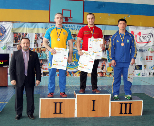 Харьковчанин Виктор Мариненко с рекордом Украины в сумме 857,5 кг (приседание – 312,5 кг, жим штанги лежа – 205 кг, становая тяга – 340 кг) стал чемпионом страны в категории атлетов до 120 кг и абсолютным чемпионом соревнований мужчин (493,58 очка по формуле Уилкса).