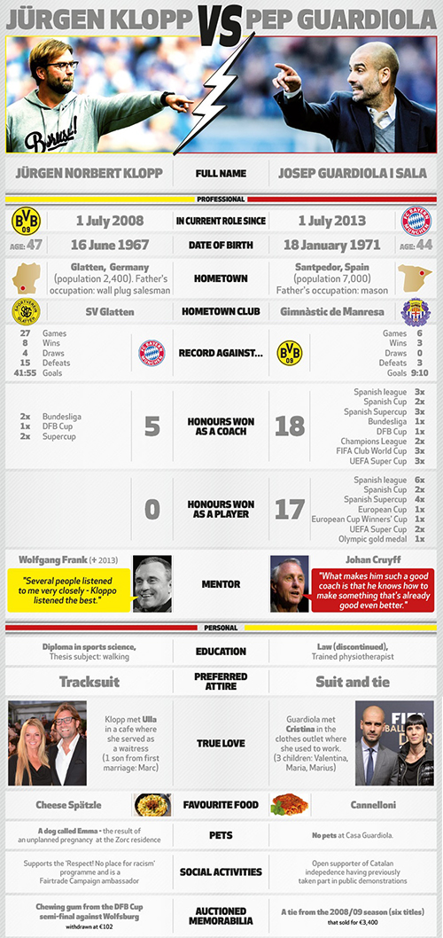 Перед этим противостоянием соперники встречались между собой 92 раза. «Бавария» имеет 40 побед, тогда как «Боруссия» обыгрывала своего соперника лишь 23 раза. В прошлом сезоне команда Клоппа дважды била мюнхенцев - 2:0 и 3:0 на выезде. «Бавария» же в последний раз увозила очки из Дортмунда в 2013-м году, когда также отправила в ворота соперника сухих три гола.