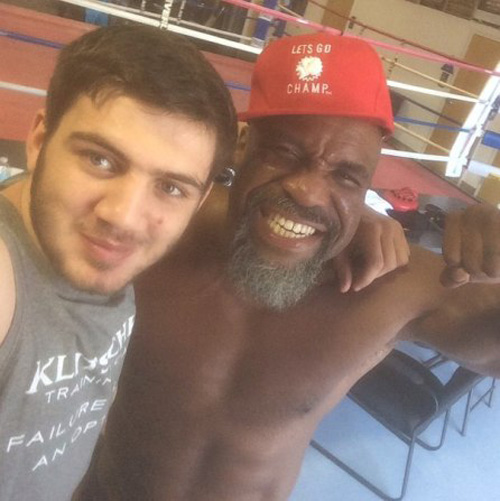 Американский супертяжеловес Шеннон Бриггс ворвался в тренировочный зал Владимира Кличко, которого он постоянно преследовал в прошлом году. Хотя «ворвался» - это слишком громко сказано. На самом деле выглядит так, что у Шеннона прекрасные отношения с командой Кличко. По крайней мере, спарринг-партнеры украинского чемпиона фотографируются с Шенноном не меньше, чем с Владимиром. На фото ниже Шеннон Бриггс с Джозефом Паркером, Изуагбе Угонохом, Яго Киладзе, Умаром Саламовым и Исмаилом Силлахом: