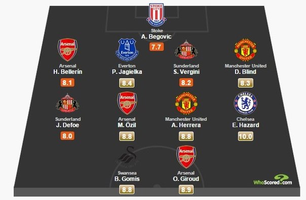 Лондонская команда просто смяла в клочья «Ливерпуль», не заметив на поле оппонента. Уже в первом тайме было все решено. Второй гол в сезоне забил Эктор Бельерин, к концу первого тайма также отличились Месут Езил и Алексис Санчес. Все три мяча получились на загляденье. Равно как и гол Оливье Жиру в концовке матча. Все, чем смогли ответить гости, это реализованный пенальти (одиннадцатиметровый заработал Стерлинг) Хендерсона. Уверенная победа позволила «канонирам» подняться на второе место, опередив «Ман Сити», который неожиданно уступил.