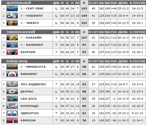 Не менее интересно на Западе. Обладатель Кубка Стэнли Лос-Анджелес, проиграв одной из слабейших команд Эдмонтону, сильно усложнил себе задачу (более того, дополнительные показатели у них хуже, чем в конкурентов):