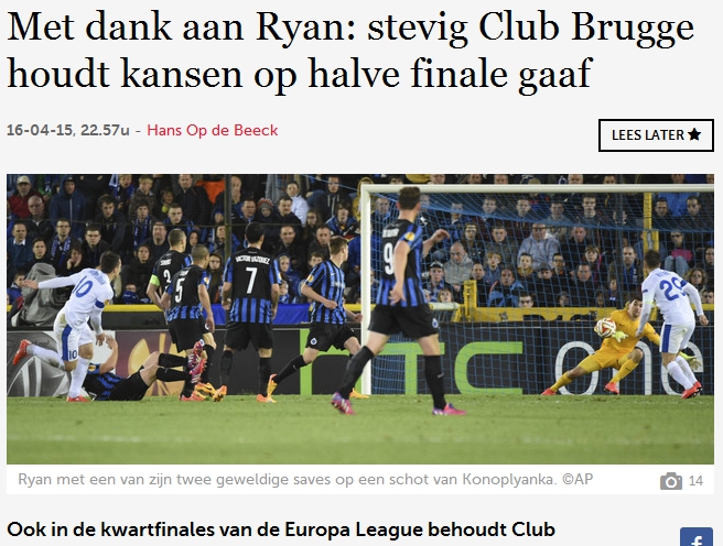 Сайт HBVL.be вышел с заголовком «Брюгге не использует возможности», хотя тут же в тексте расписывает свой восторг от того, как не забивал Коноплянка. В принципе, журналисты этого издания менее оптимистично «смотрят в завтрашний день», но гордость от того, что «Брюгге» не проигрывает в Лиге Европы 1,5 десятка матчей, присутствует.