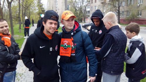 Как и в любом городе, здесь команду сопровождала своя группа болельщиков. Причем к встрече с «Шахтером» фанаты подготовились более чем тщательно. Вручили команде символические «хлеб-соль», а Мирчу Луческу встретили огромным баннером «Мистер, оставайтесь с нами!».