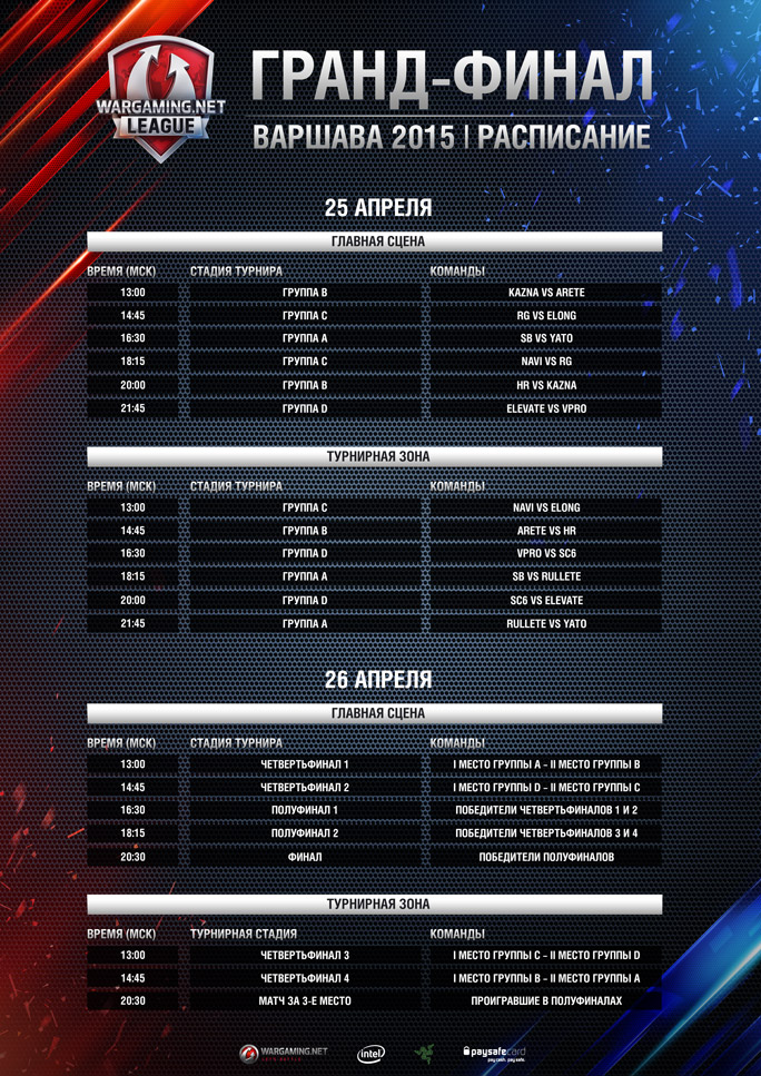 В ближайшие выходные, 25 - 26 апреля, Варшава распахнет свои объятия гранд-финалу Wargaming.net League 2015. 12 сильнейших команд со всего мира сразятся в бескомпромиссной схватке за звание лучшей танковой дружины года.