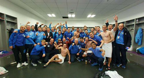 Первые эмоции от победы над «Брюгге» футболисты «Днепра» выражали на поле, а после уже и в раздевалке команды. Исторический выход в полуфинал дался днепропетровцам нелегко, но от этого он стал еще более ценным.