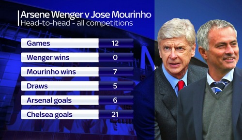 - Жозе Моуриньо никогда не проигрывал в качестве тренера «Челси» команде Арсена Венгера в любых соревнованиях.