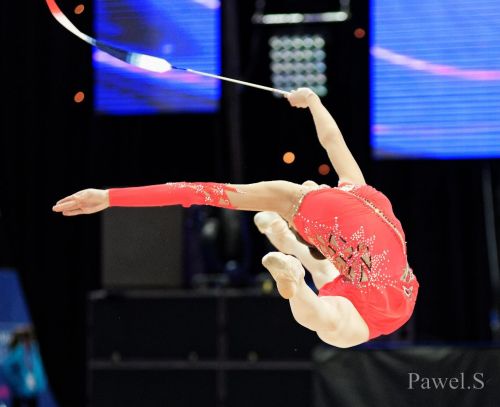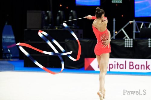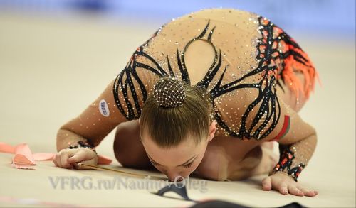 Призеры в командных соревнованиях (слева направо): серебряные медалистки - Мелитина Станюта, Екатерина Галкина, чемпионки - Яна Кудрявцева, Александра Солдатова, Маргарита Мамун, бронзовые медалистки - Анна Ризатдинова, Виктория Мазур, Элеонора Романова