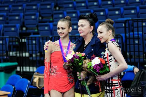Призеры с булавами: Анна Ризатдинова (серебро), Яна Кудрявцева (золото), Мелитина Станюта и Екатерина Галкина (бронза)