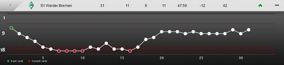 Если «Вердер» провалил начало сезона, оказавшись после первой части чемпионата в зоне вылета, то «Ганновер», наоборот, хорошо начал чемпионат, но рискует завершить его фиаско. А ведь это команда, которая в последних сезонах боролась исключительно за высокие места, занимая места с 4-го по 10-е, но с сезона 2009/10 ни разу не боровшаяся за выживание.