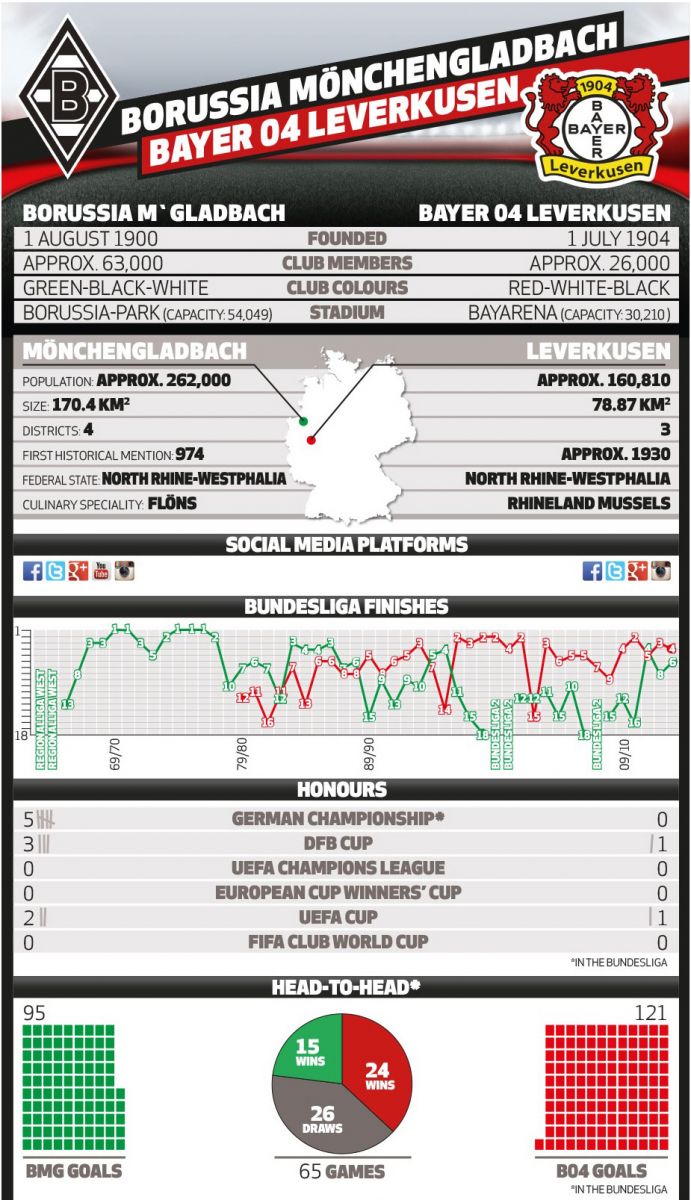 Победа в прошлом туре чемпионата над «Баварией» дает повод болельщикам «Байера» надеется на достойный результат в Гладбахе. Команда Фавре в текущем сезоне Бундеслиге в родных стенах уступила лишь однажды - «Айнтрахту» (1:3), выиграв после этого все 8 матчей на родном «Боруссия-Парке». В матче первого круга в Леверкузене команды расписали мировую 1:1. На гол Чалханоглу гости ответили точным ударом Броверса. А вот последнюю победу на своем поле над «Байером» в Бундеслиге Гладбах добывал в далеком 1989-м году!
