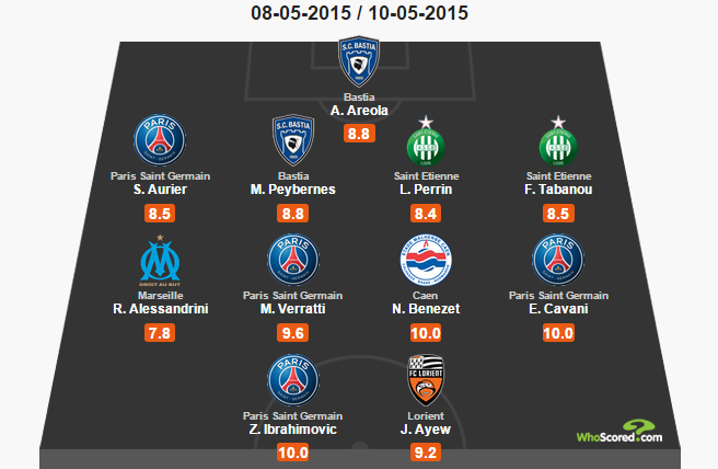 Соскучившись по футболу, отбывший 3-матчевую дисквалификацию Златан Ибрагимович, во втором матче кряду стал одним из главных творцов победы своей команды. Шведский форвард поучаствовал в четырех из шести забитых мячей ПСЖ. Мощную игру выдал и Эдинсон Кавани, записав на свой счет хет-трик. Команде Лорана Блана осталось выиграть всего лишь один из оставшихся двух матчей, чтобы обеспечить себе чемпионство (хотя, устроит и ничья). Впрочем, уже сейчас можно поздравлять парижан с очередным титулом, ведь даже в случае двух поражений ПСЖ, разница забитых и пропущенных будет лучше у действующего чемпиона Франции, нежели у «Лиона».