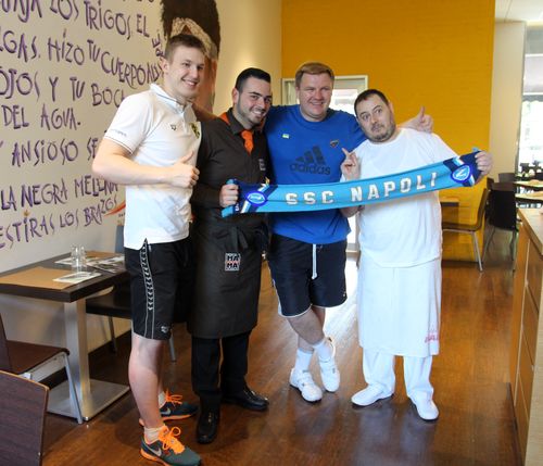 Андрея Говорова знают и любят в Казерте. После обеда работники ресторана не отпустили пловца без фото и своих прогнозов на вечерний матч «Наполи»— «Днепр». В их версии неаполитанцы обязательно должны были выиграть. Итог игры был иной — 1:1.