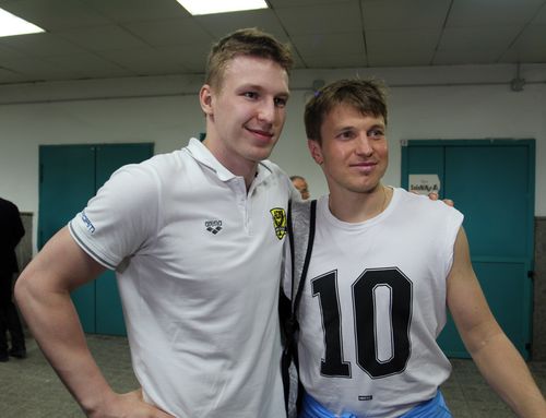 Насыщенный общением день закончился матчем, после которого два воспитанника днепропетровского спортинтерната, пловец Андрей Говоров и футболист Руслан Ротань, познакомились и поприветствовали друг друга
