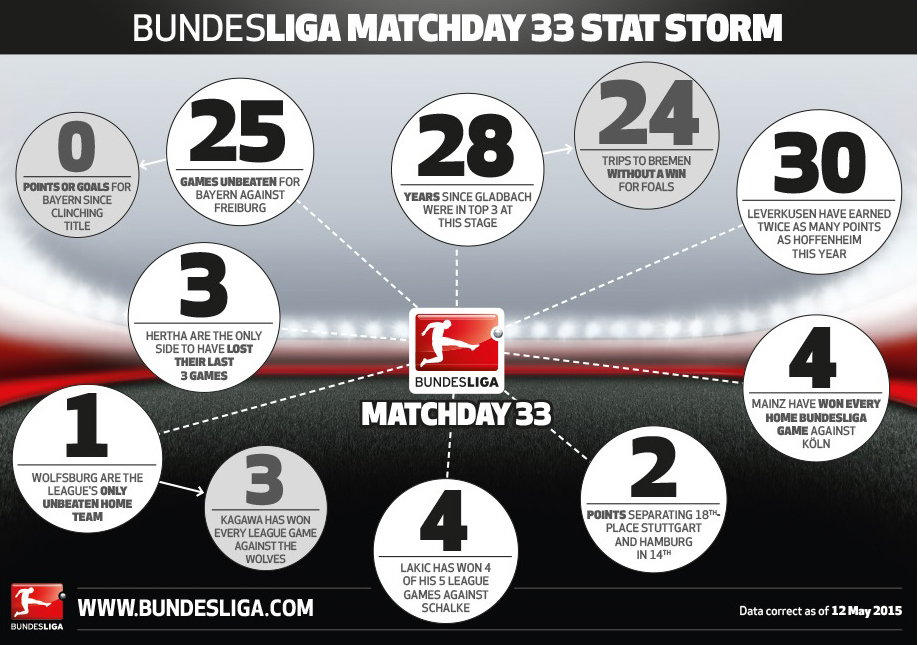 В предпоследнем туре Бундеслиги нас ждет настоящее немецкое порно со всеми исходящими из этого последствиями. Судите сами, за два тура до финиша чемпионата 6 команд претендуют на вылет во вторую Бундеслигу, 5 команд ведут борьбу за еврокубки, а 3 команды продолжают вести бой за второе и третье места. Накануне старта 33-го тура чемпионата Германии поговорим о самых интересных его матчах.