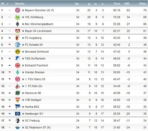 Чемпионат Германии прошедшего сезона выдался самым интересным среди всех остальных первенств Старого Света в плане интриги. Здесь до последнего тура оставалась интрига в борьбе за выживание, в борьбе за места в еврокубках, а также в распределении 2-го и 3-го места. Другое дело, что не сложилось в этом сезоне в Бундеслиге с борьбой за чемпионство, которую можно было считать завершенной еще после первой части сезона.
