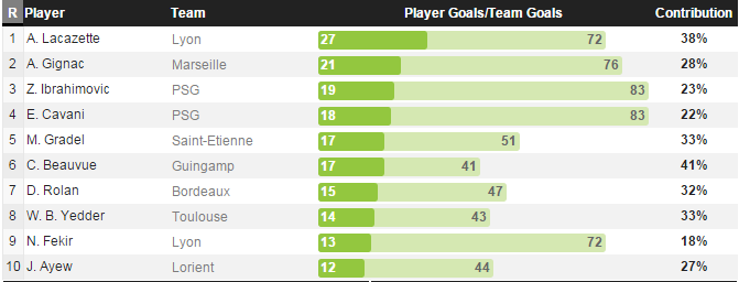 Ивуарийский вингер «Сент-Этьенна» провел свой лучший сезон в карьере. Макс Градель стал не только ведущим исполнителем и лидером «стефануа», но и лучшим бомбардиром команды Кристофа Галтье. На счету 27-летнего ивуарийца 17 забитых голов, что позволило ему замкнуть пятерку лучших бомбардиров Лиги 1. Его дубль в ворота «Генгама» помог «Сент-Этьенну» завершить сезон на мажорной ноте.