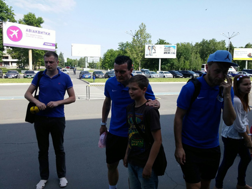 Перед вылетом из Днепропетровска игроки кто на чем стягивался к аэропорту, кто-то подъезжал на шикарных авто, кто-то на клубном автобусе, а скромный парень Федецкий приехал в аэропорт на такси Daewoo Lanos :) В кои-то веки игрокам разрешили взять с собой группу поддержки – дети, жены, подруги и друзья – все они составили большую делегацию «Днепра» в этот раз.